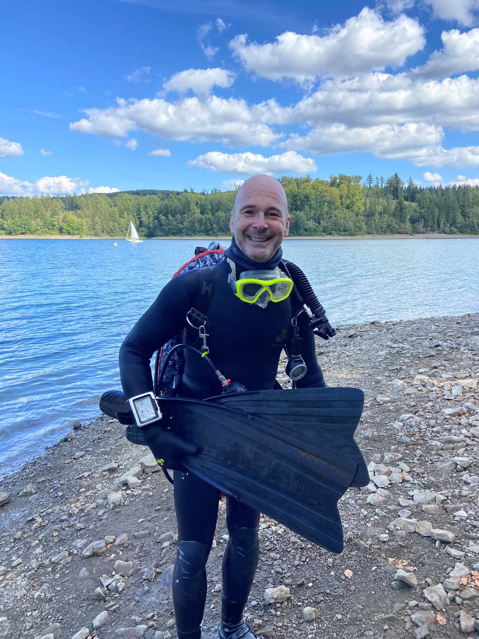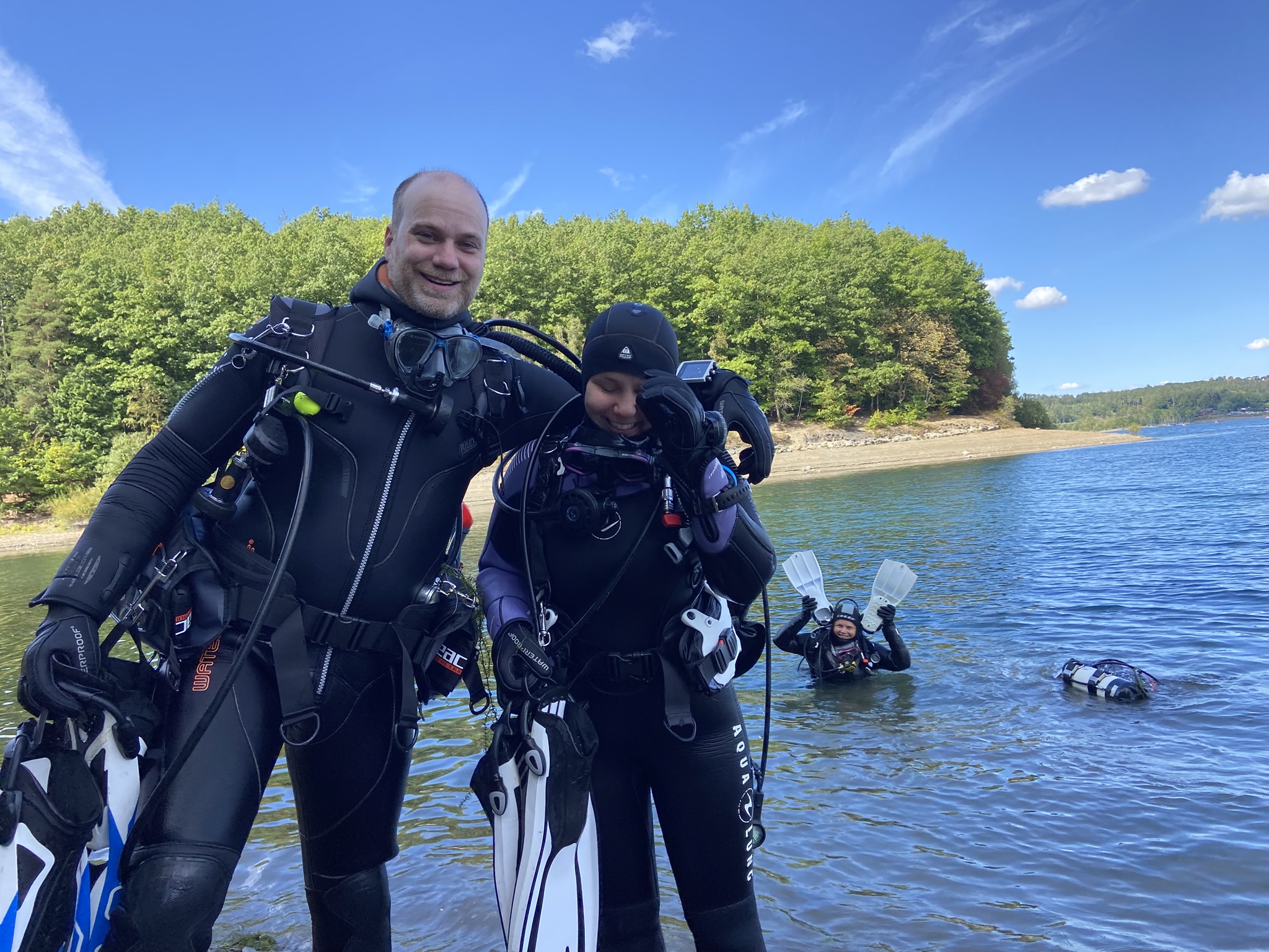 Sechs motivierte Anwärterinnen und Anwärter auf das DTSA 2* haben am Wochenende den praktischen Teil im Freigewässer begonnen. Auf dem Programm standen zunächst Apnoeübungen wie das Abtauchen auf 7,5 Meter sowie die Rettung eines Tauchers aus 5 Metern Tiefe.